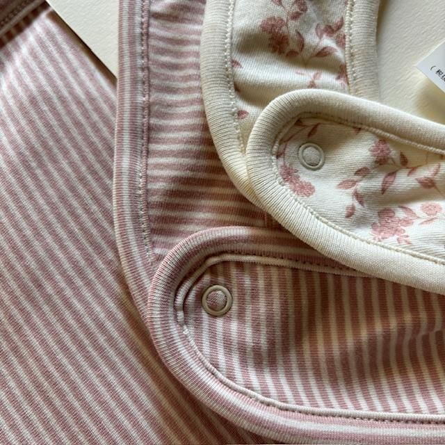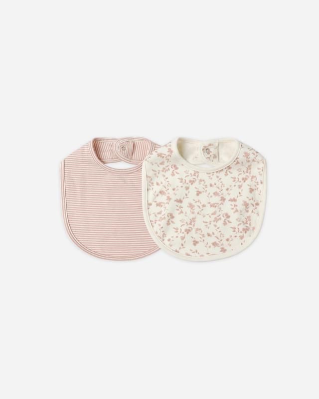 AW25 QUINCYMAE /JERSEY SNAP BIB, 2 PACK || FRENCH GARDEN, ROSE MICRO STRIPE