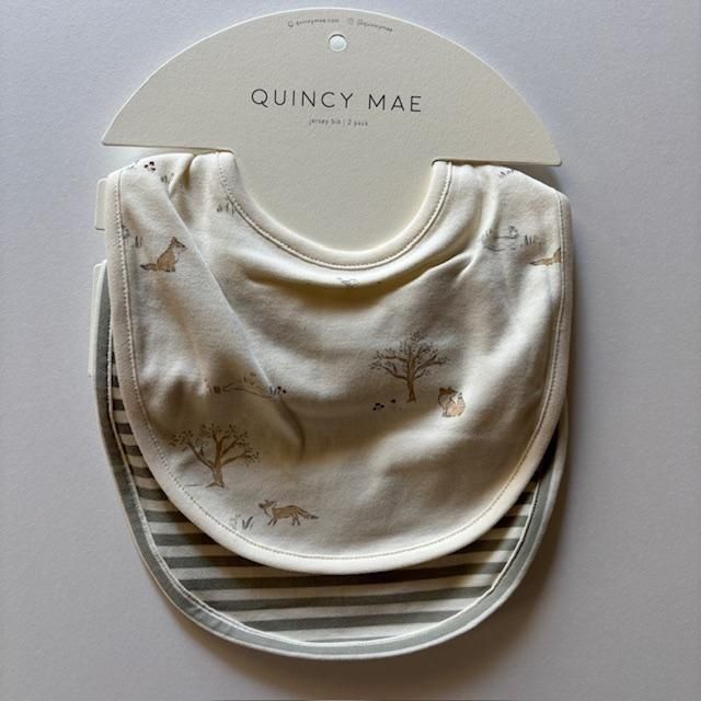 AW25 QUINCYMAE /JERSEY SNAP BIB, 2 PACK || ERSEY SNAP BIB, 2 PACK || FOX LAND, FERN STRIPE