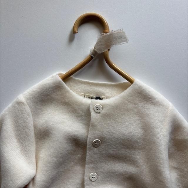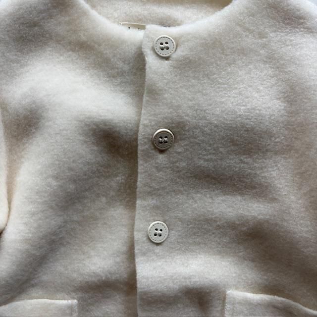 赤ちゃんのためにデザインされたエクルカラーの可愛らしいカーディガンです。