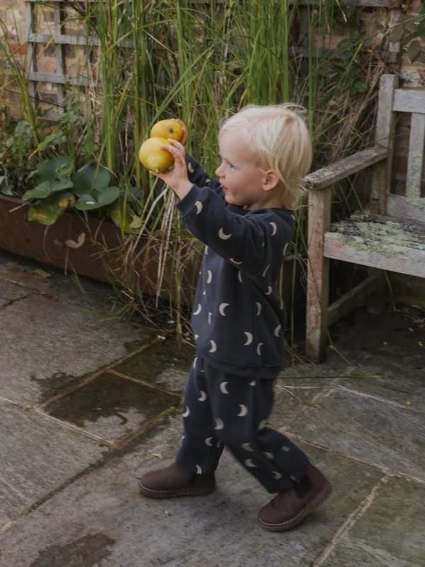 この驚くほど柔らかなコットンパンツは、ワードローブに欠かせない必需品です。美しいチャコールカラーに、シグネチャーのムーンプリントをあしらいました。伸縮性のあるウエストバンドで、着心地とフィット感をさらに向上。スウェットシャツやベストと合わせて、着回し力抜群の着こなしをお楽しみいただけます。