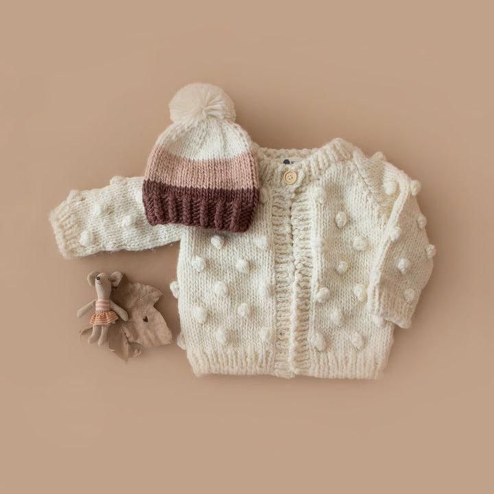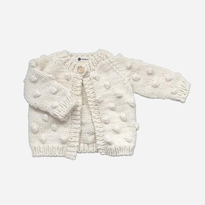 ・立体的なぼんぼりデザインがかわいいポップコーンニットカーディガン。